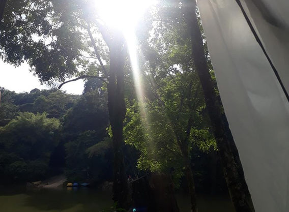 Nosso espaço não possui ponto de tomada próximo a barraca, e o banheiro fica a 150 metros, pois o local do camping é próximo a represa, sendo proibido qualquer construção.
